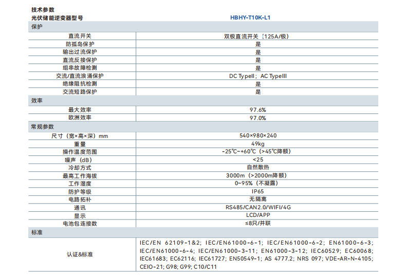 三相低压储能逆变器 (HBHY-T10K-L1系列)(HBHY-T10K-L1系列)