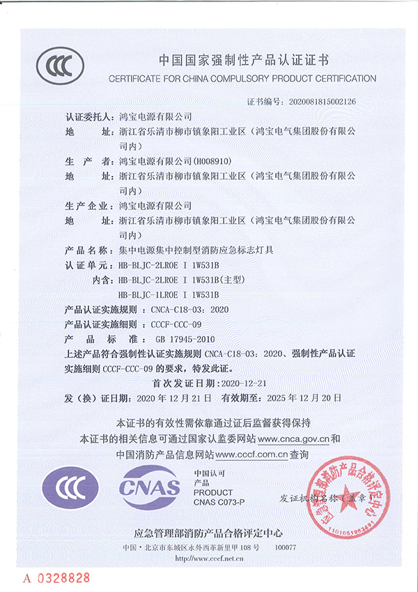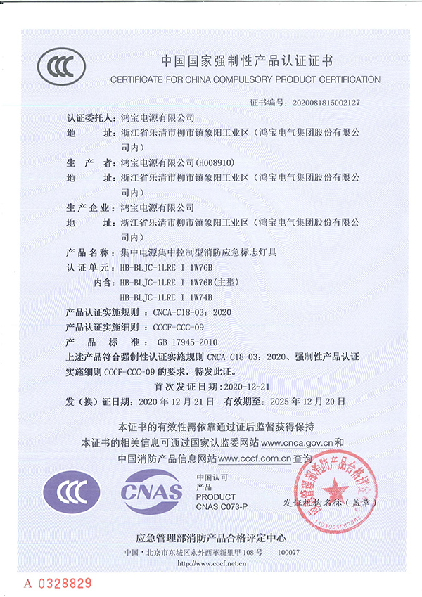 ● 满足国家标准GB17945-2010 《消防应急照明和疏散指示系统》的要求;