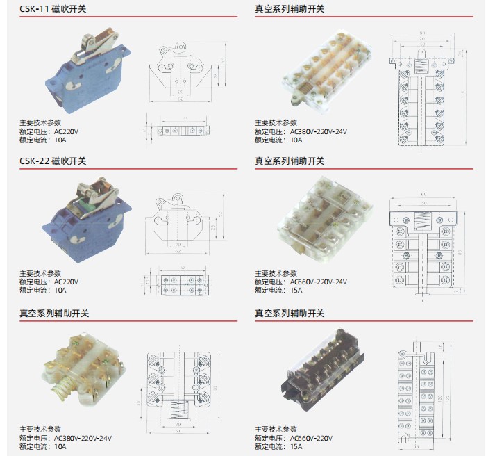 辅助开关是主开关的一部分,配置于高压或中压断路器、隔离开关等电力设备中作为二次控制回路的分闸、合闸、信号控制以及联锁保护作用,同时也可以作为组合开关和转换开关使用。辅助开关之所以名称里面有“辅助”两个字,是因为它不是独立的一个开关,它在操控系统中是一个辅助性的分断、接通、联锁功能实现的载体