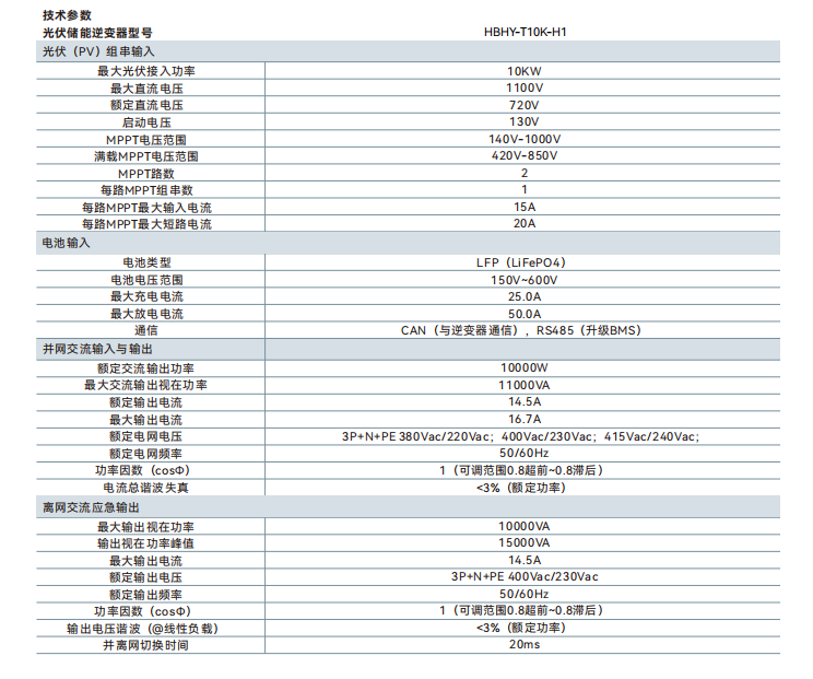 三相高压储能逆变器 (HBHY-T10K-H1系列)